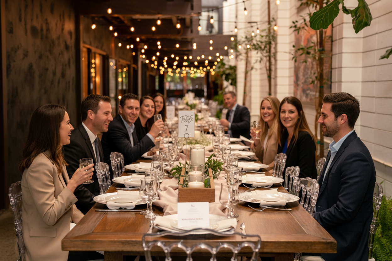 The service fee includes planning support, setup, breakdown, place settings, and coordination with our kitchen team to ensure your meeting runs smoothly.